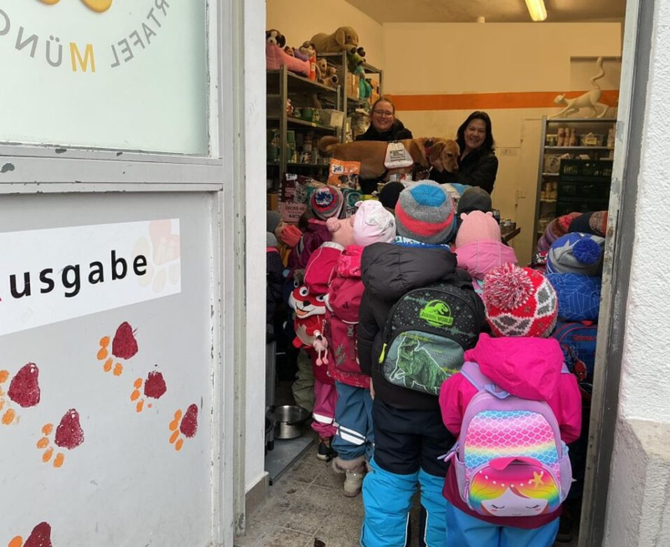 Eine liebgewordene Tradition ist der Besuch der Maikäfer- und Schildkröten-Gruppe eines Münchner Kindergartens. Wir sind jedes mal aus dem Häuschen! Mit dabei die zweibeinigen Erzieherinnen und Erzieher sowie die vierbeinige Begleitung “Mira”. Seit vielen Jahren besuchen uns die Zwerge und bringen, was sie tragen können, um die Hunde und Katzen…...